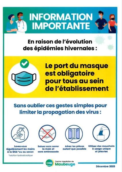 Merci de venir muni(e) de votre propre masque lors de votre venue à l’hôpital.